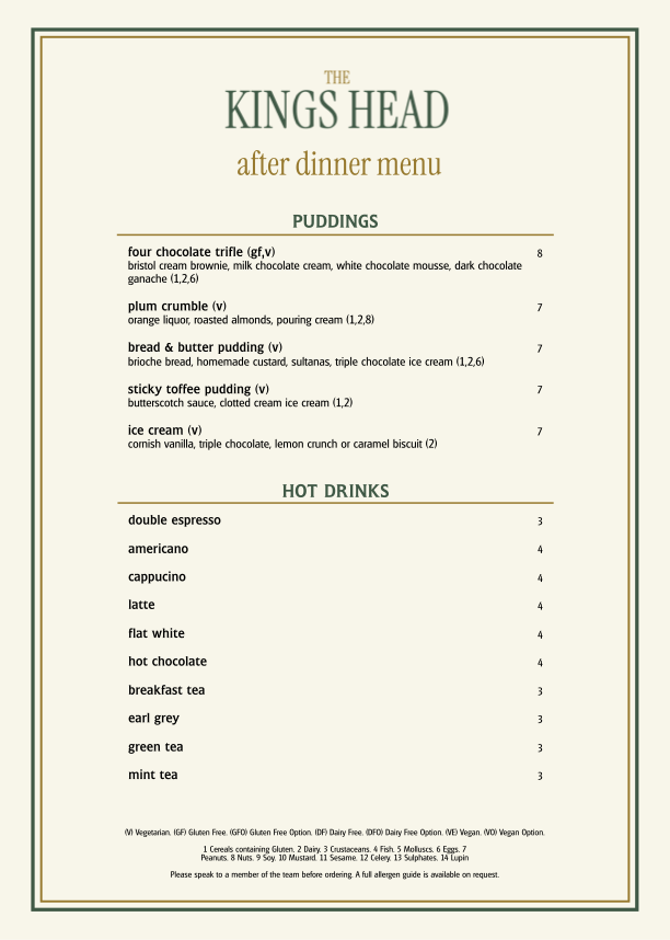 puddings menu